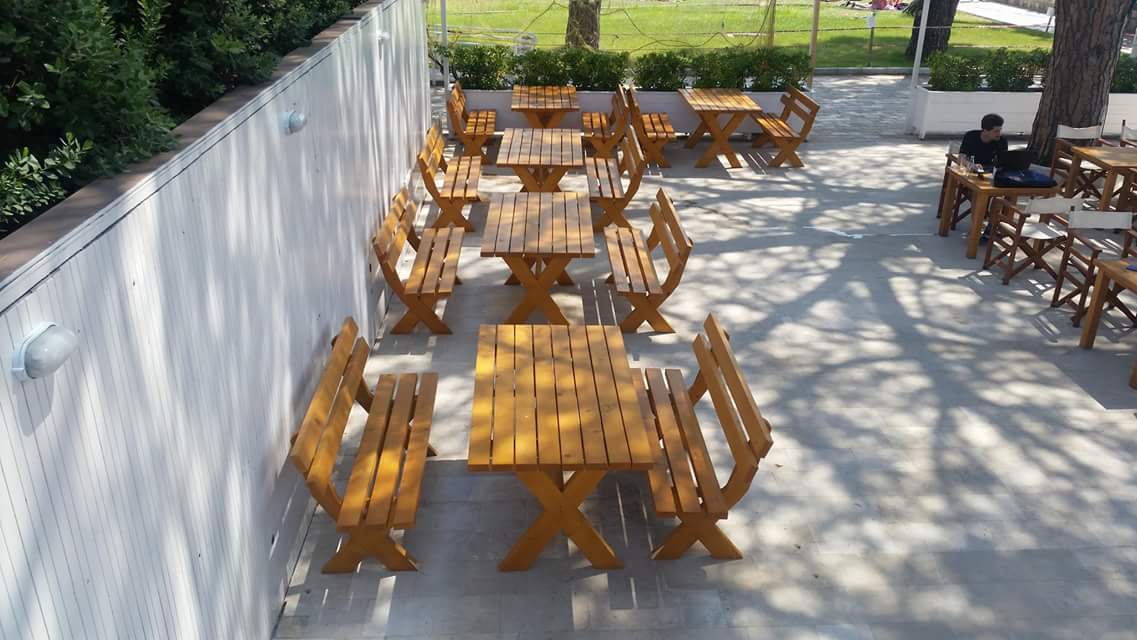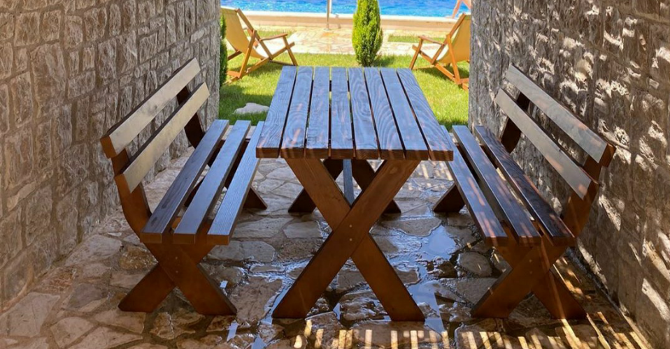 Restoranske klupe u setu, prepoznatljivog dizajna. Idealno rješenje za terase vila i apartmana, kao i terase restorana.